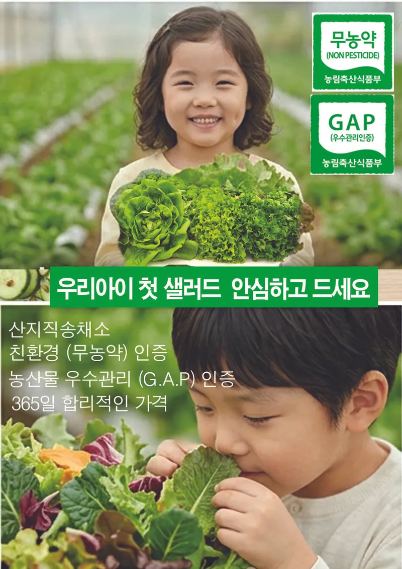 일반적인 채소와 달리 국가 인증마크 두 개가 꽉 잡고 있는 '이중 잠금' 시스템으로 키워내 더욱 건강하답니다. 우리 가족이 먹는 음식인 만큼, 타협하지 않는 청결함과 안전함으로 완성한 프리미엄 채소를 만나보세요.