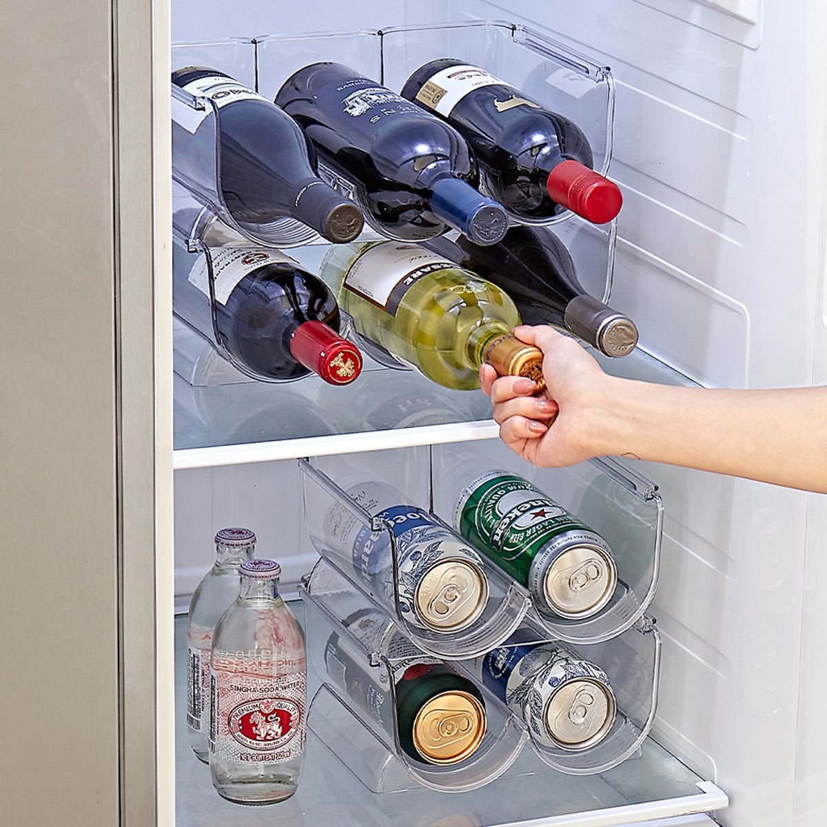 리메이크 수납 정리 텀블러 정리함 2구 / 팬트리 와인 거치대 와인랙 적층 보관함
