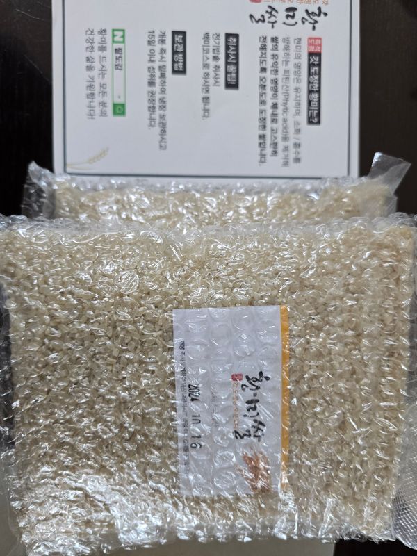 쌀이 1키로씩 진공포장되어 왔네요 도정이 5부도정이라 영양이 풍부할거같네요
