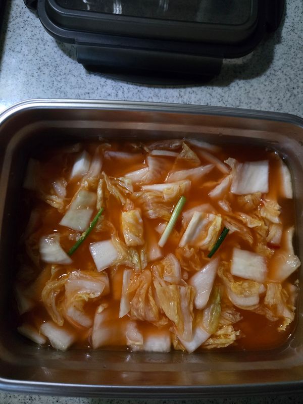 상품평 믿고 구매했는데 전 실망입니다 일단 국물이 미원맛처럼 느끼하고 개운하거나 깔끔하지 않고 둘째는 배추가 그냥 일자로 찢기만 하고 먹기 좋게 썰어져 있지 않아서 국물김치인데 먹기에 불편합니다 통에 담아져 오면 더더욱 썰어져 있어야 바로 먹을 수 있을것 같은데!!! 그리고 가격도 맛이나 양에 비해 비싸다는 생각은 팔도감에서 여러 김치 사면서 처음 느껴봅니다!맛이 좀 개운하고 깔끔했으면 하는 바램입니다