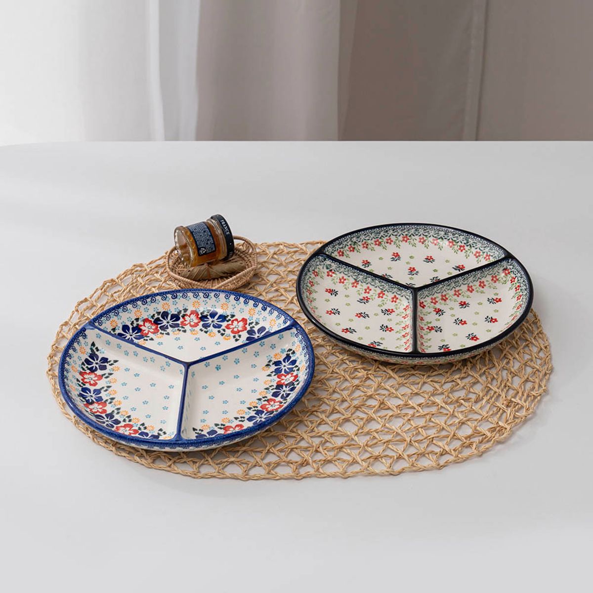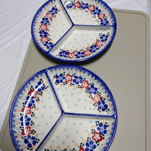 [1+1] 프라카 폴란드풍 도자기 원형 3절 나눔접시 (총2P)