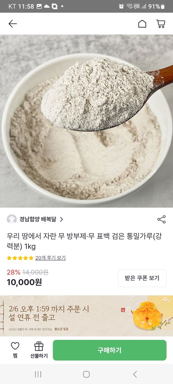 글루텐 함량이 13% 정도로 강력분에 해당하기 때문에 제빵에 사용하기 좋습니다. 제분 특성상 수분 함유량이 높아, 제빵시 수분량을 일반 밀 대비 30% 정도 낮게 넣는 것을 추천드려요.