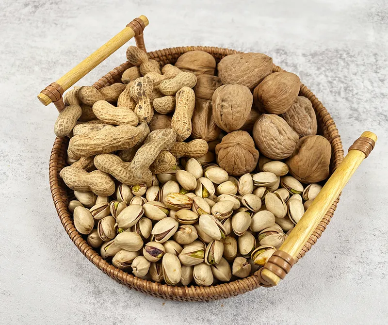볼에 먹기 좋은 견과류가 아롱다롱 매달