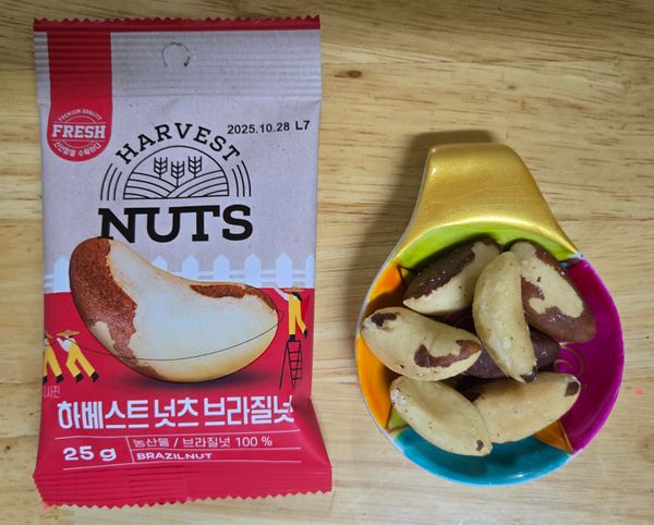 브라질넛 하루 권장량이 생각보다 적었던 것 같은데 1봉지에 꽤 넉넉하게 들어있어서 이걸 다 먹어도 되나 싶긴 하지만 그래도 먹기 시작하면 순삭..