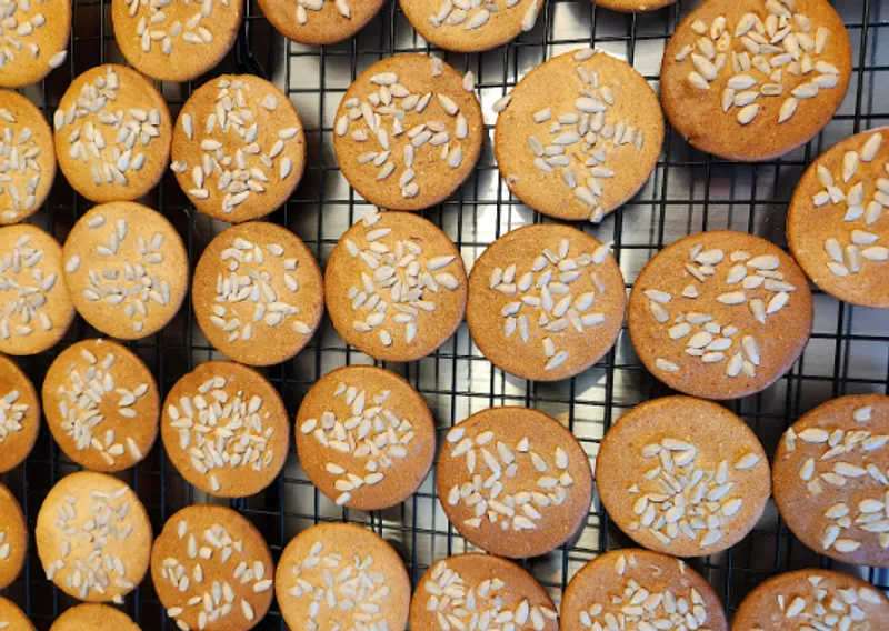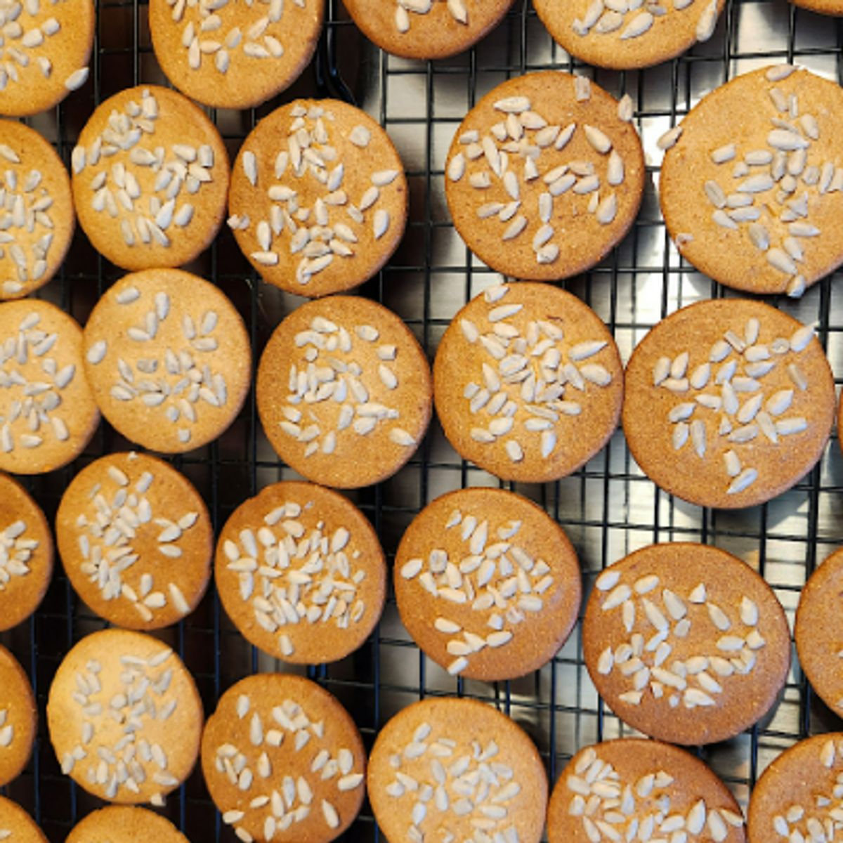 부담이 덜하도록 쌀전병보다 설탕량을 더 줄인 보리쌀 전병입니다. 쌀가루 대신 흰찰쌀보리 가루로 대체하였으며 여주 가루를 첨가하였습니다.