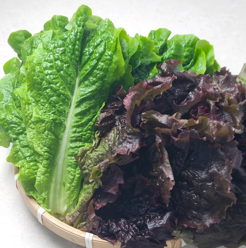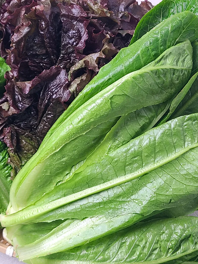 로메인, 적상추, 청상추의 다양한 맛과 색깔이 조화롭게 어우러져요. 각 상추가 가진 풍미로 입안에서 즐거운 맛을 선사합니다.