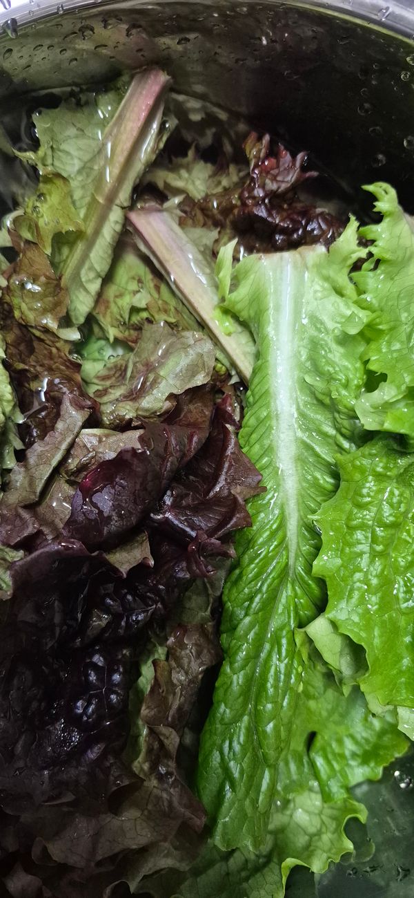 상추가 두가지 정말 깨끗한것시 물에 씻어 냉장고에 넣어 놓아서요. 잘먹을께요^^