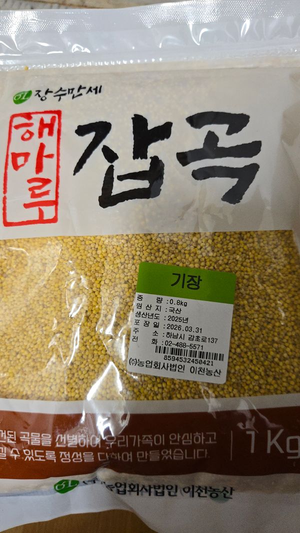 마트에는 기장이 없어서 조 사왔는데 팔도감에 들어가보니 기장이 있더라고요 저는 조보다 기장이 더 좋아요 잘 먹겠습니다
