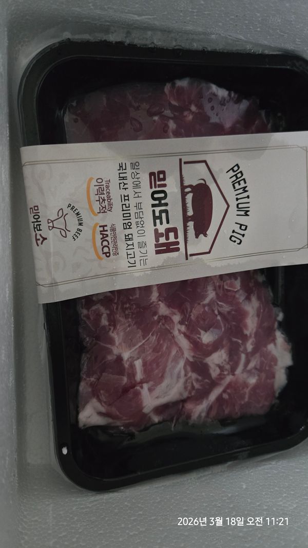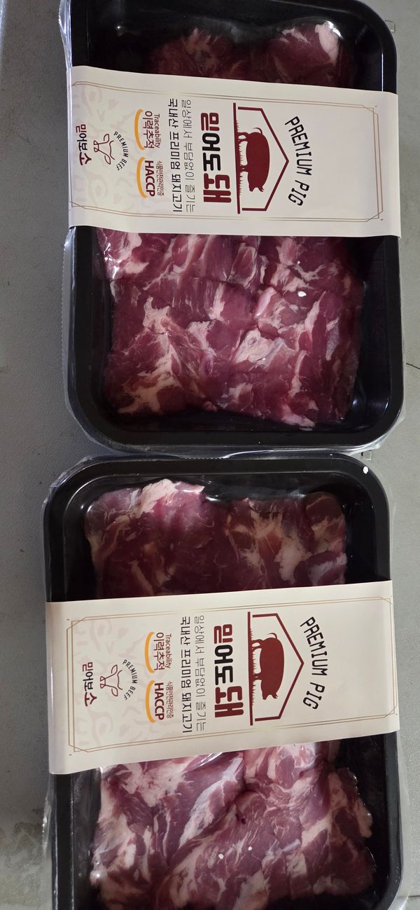 아직 안먹어봤지 고기색이 너무예쁘네요 신랑이랑 구워먹고 김치찌게에도 조금넣고 내일은 비지찌게에 조금넣어서 하려고요