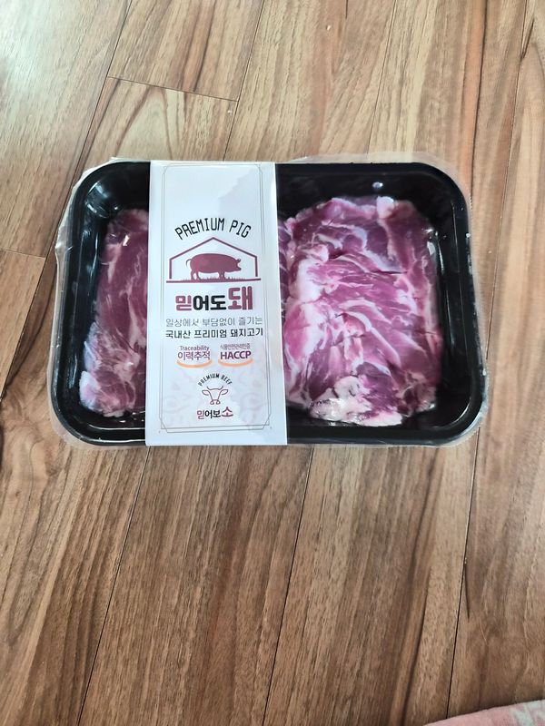 아직 안먹어봤지 고기색이 너무예쁘네요 신랑이랑 구워먹고 김치찌게에도 조금넣고 내일은 비지찌게에 조금넣어서 하려고요