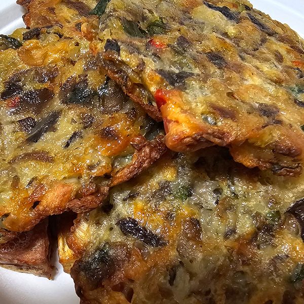 버섯이 진짜 듬뿍 들어 있어요 느타리 버섯전 제일 좋아하는 전인데 에프에 돌려 먹으니 바삭하고 너무 맛있습니다