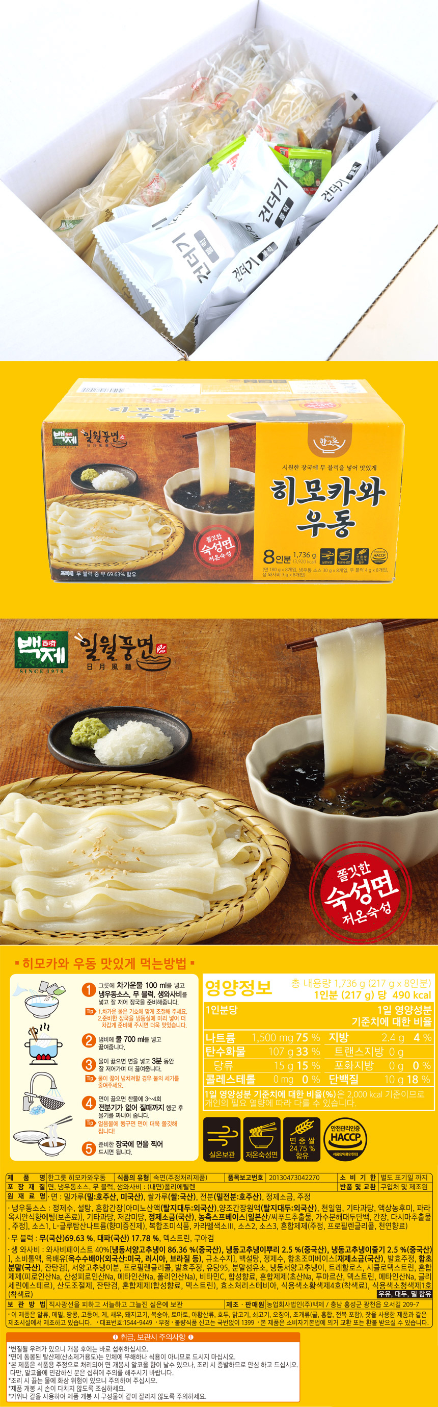 백제 일월풍면 히모카와 우동 8인분 냉우동 / 코스트코