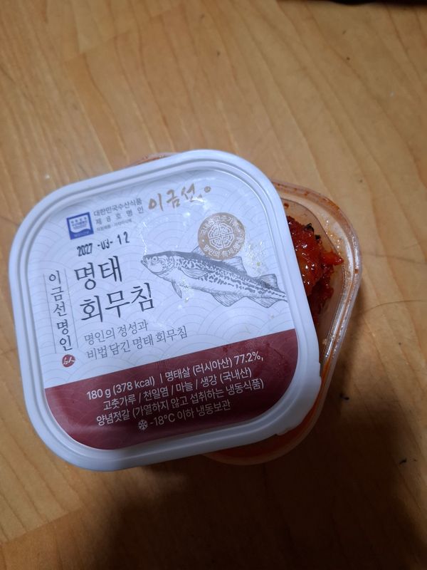 팔도감에서 두 번 째, 두 종류의 명태회무침을 주문했습니다. 둘 중, 저는 이 제품이 입맛에 맞네요. 양념장에 파묻히지 않고, 씹는 맛도 있고, 비린내도 덜하고, 포장이 작아서 따로 소분하지 않아도 포장 뜯지 않은 건 냉동 보관하기에도 좋아요.