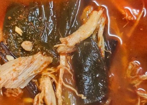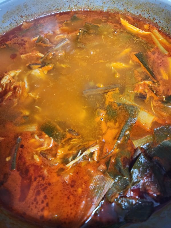 색깔은 매울것같은데 맵지않은 맛있는맛이고 오랜만의 닭개장 잘먹고 있습니다