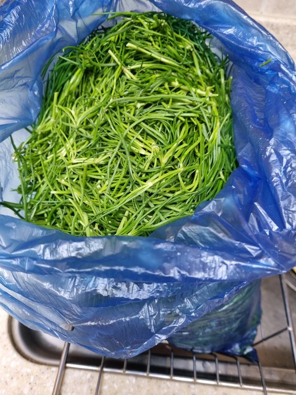 처음 먹어보는데 식감이좋다고 하네요 양이 많아서 데쳐서 얼려 놨어요