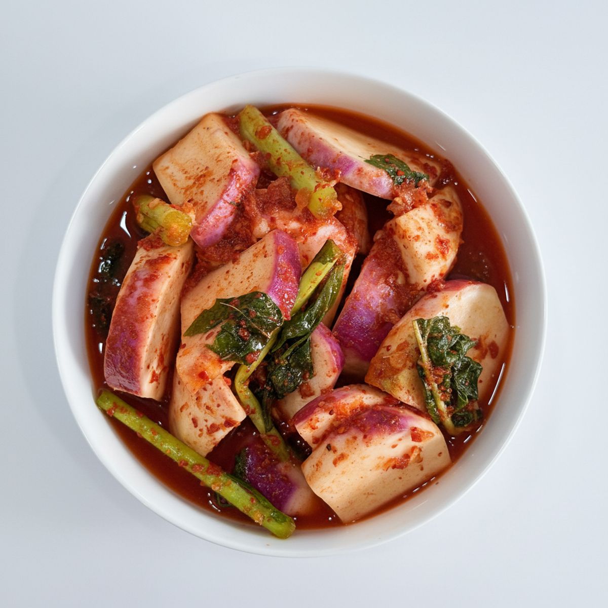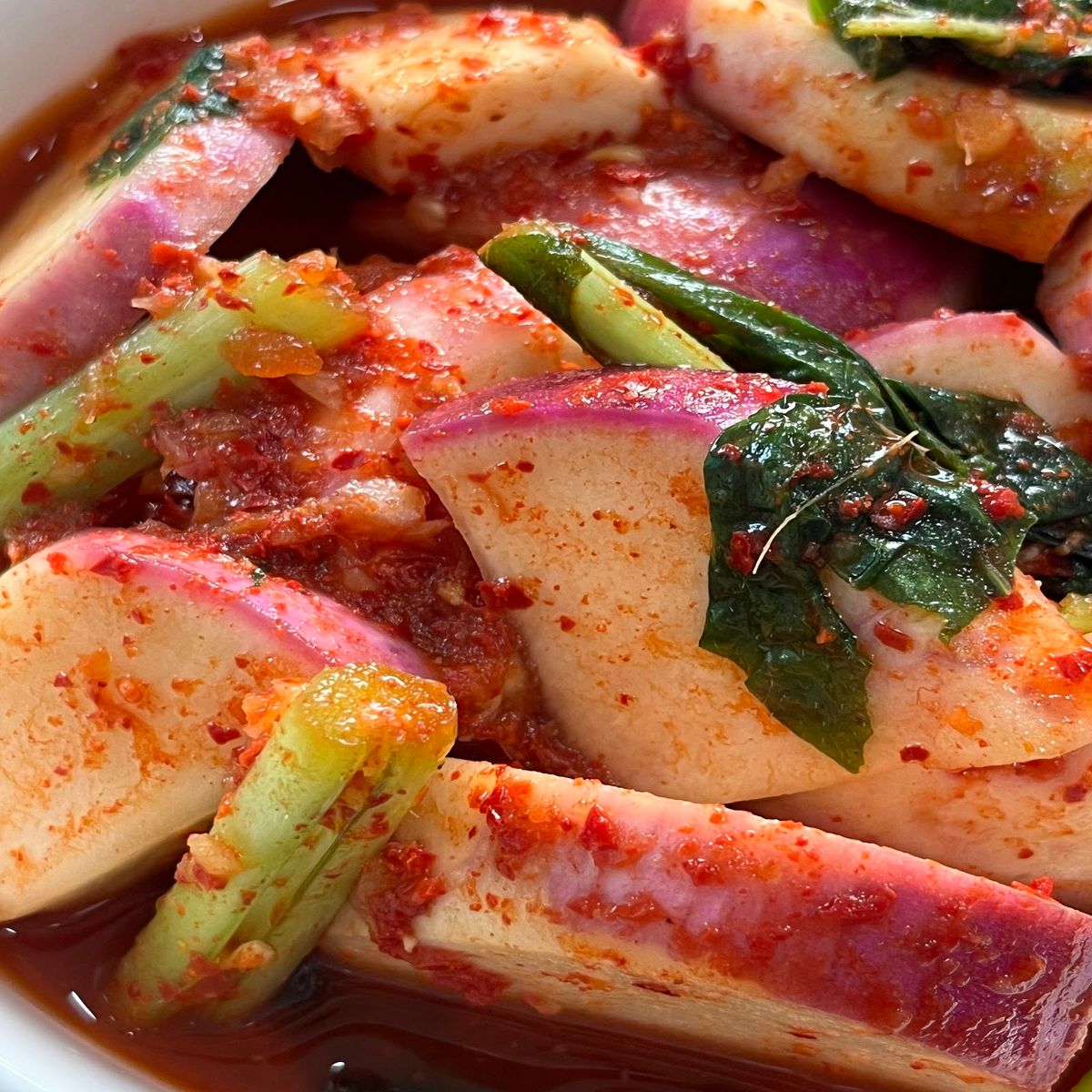 강화도의 해풍과 황토 토양에서 자라난 순무를 당일 새벽 경매장에서 직접 선별해 사용하고 있어요. 수백 번의 시행착오로 완성한 액젓 비율로 강한 액젓 향 없이도 깊은 맛을 내며, 인공 조미료를 일절 사용하지 않아 재료 본연의 맛을 그대로 살렸습니다. 발효되면서 맛이 더욱 풍부해지는데도 자극적이지 않은 정직한 맛이에요.
