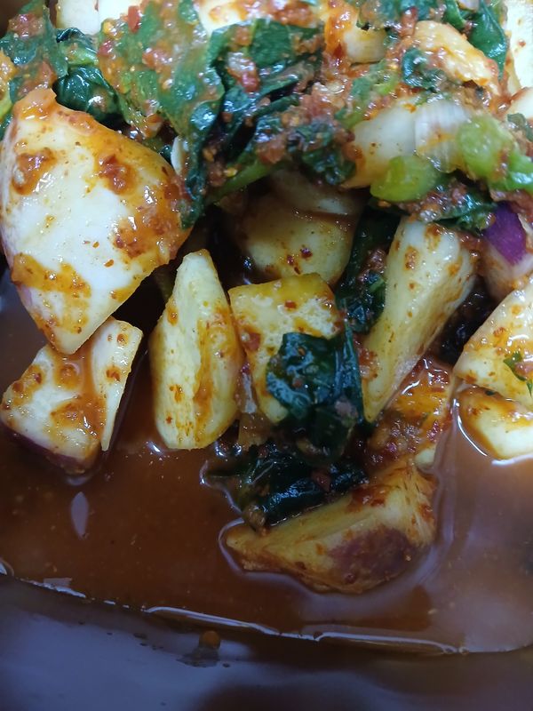갓담은 매콤쌉할한 순무김치 양념이 맛있어요 익으면 더 맛있을거 같아요 오래전에 먹어보고 오랫만어 먹으니 맛있네요