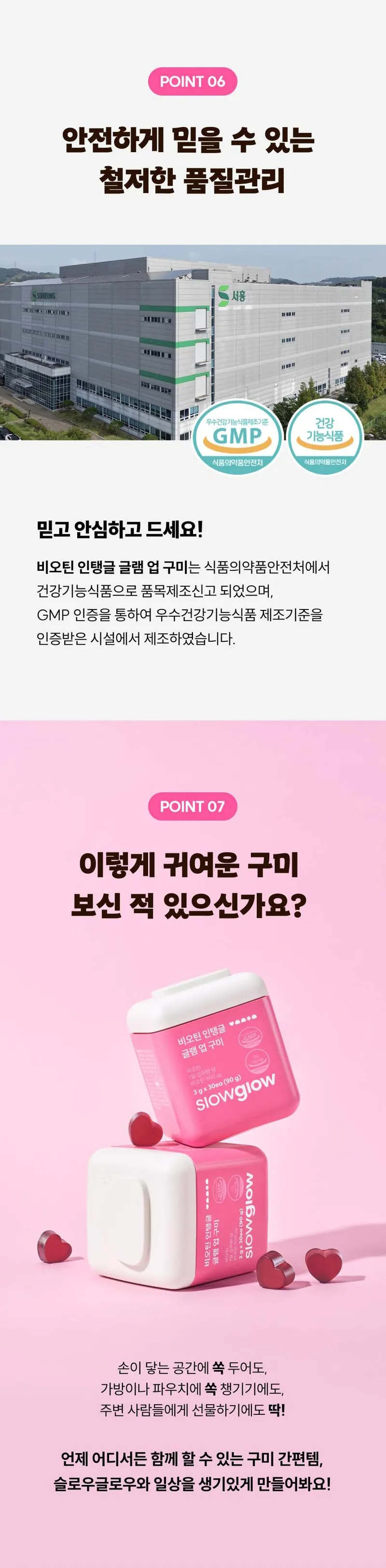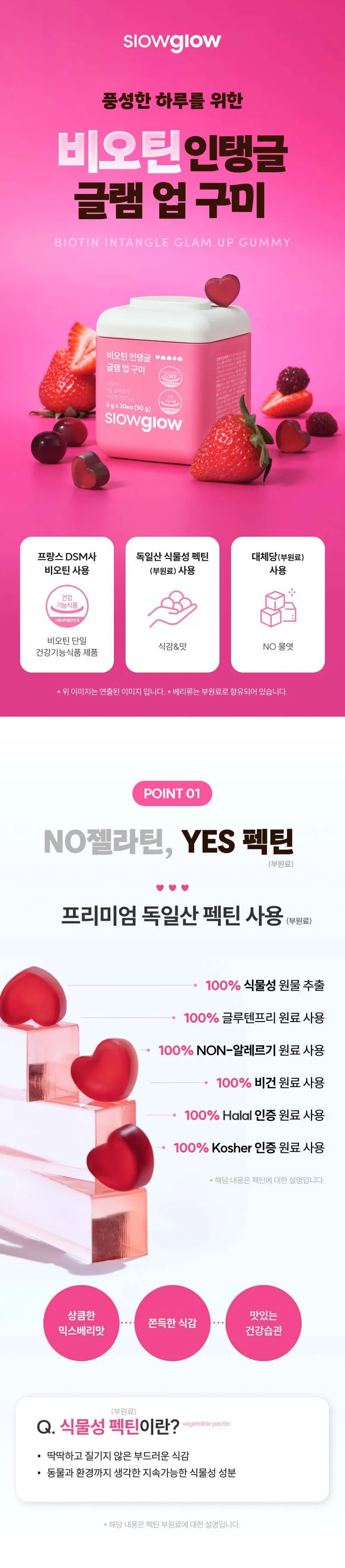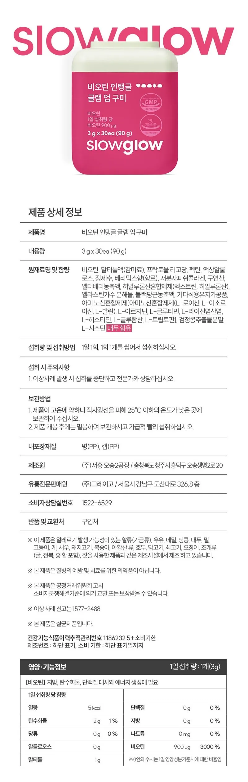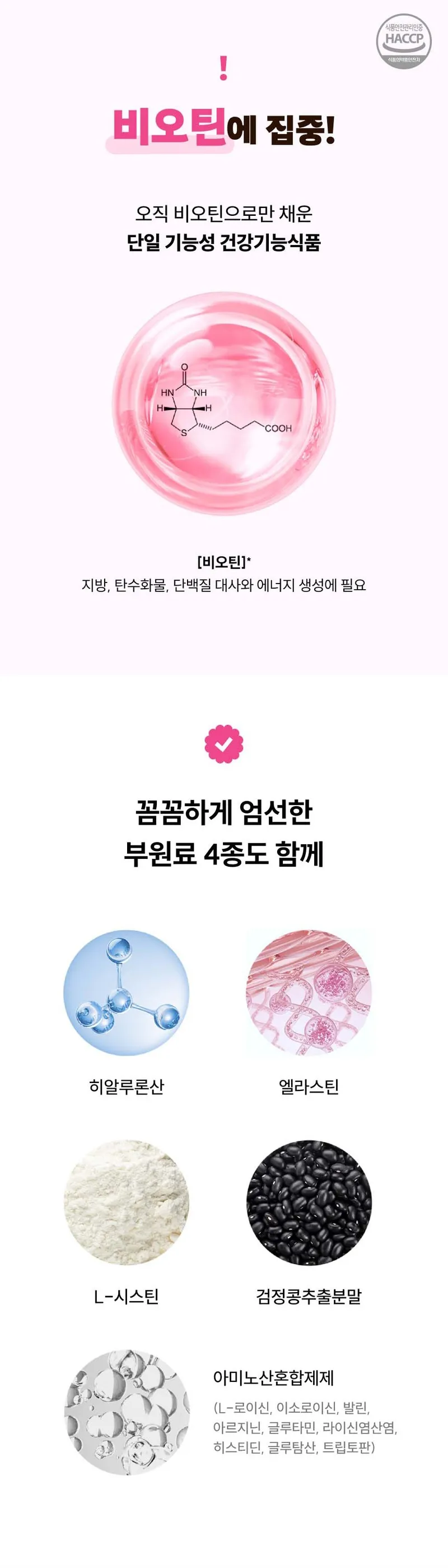 구미 1개 당 비오틴 하루 영양성분기준치 3000% 충족시킬 수 있는 함량이 들어있어요! 불필요한 첨가물을 최소화 해서 더욱 부담 없으실 거예요.