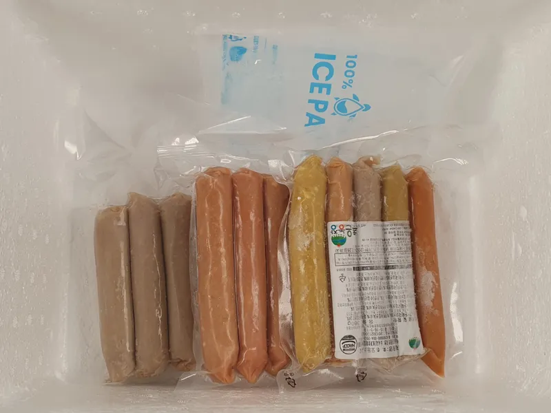 상품은 냉동 상태로 아이스박스에 아이스팩을 동봉해서 보내드립니다.