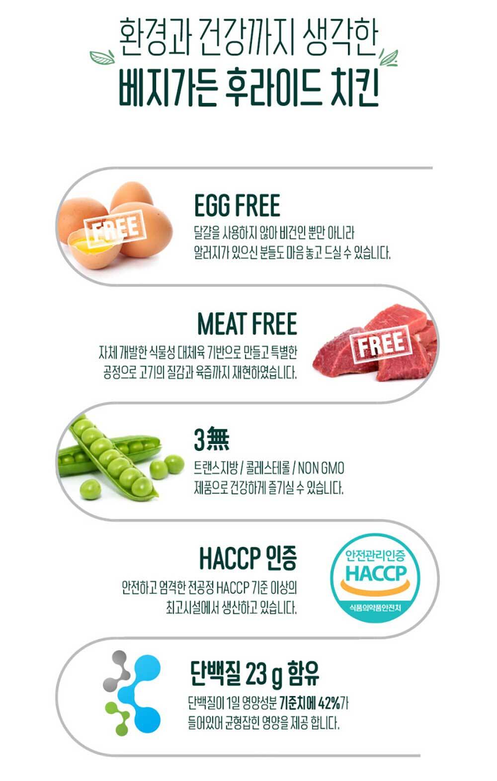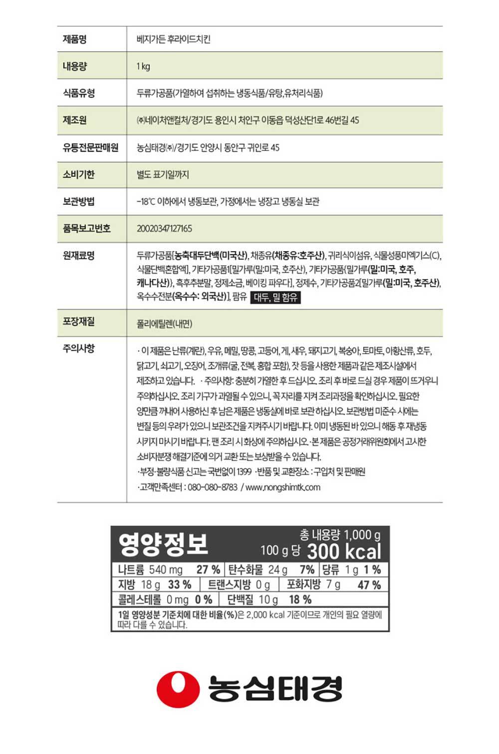 [G] 베지가든 후라이드 순살 치킨 1kg 대용량 (식물성 대체육) 1개