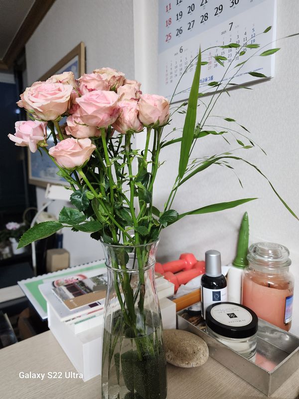 5대가 생각보다 여러송이라서 양이 적지 않고 좋습니다 아래에 있는 잎 조금 떼고 그대로 꽂았습니다