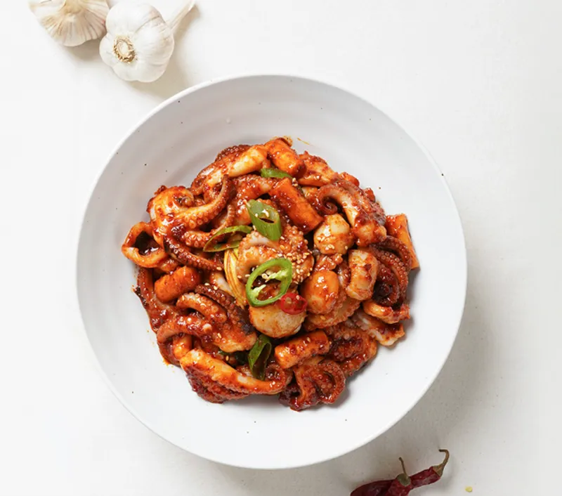 탱글하고도 쫄깃함이 살아있는 최상급 쭈꾸미를 엄선하여 사용해 준비했어요. 조리 후에도 줄어들지 않고 통통함이 유지된답니다. 여기에 맛집의 비법 소스를 더해 완성했죠. 오동통한 식감과 감칠맛 넘치는 쭈꾸미의 멋진 조화를 만나보세요.