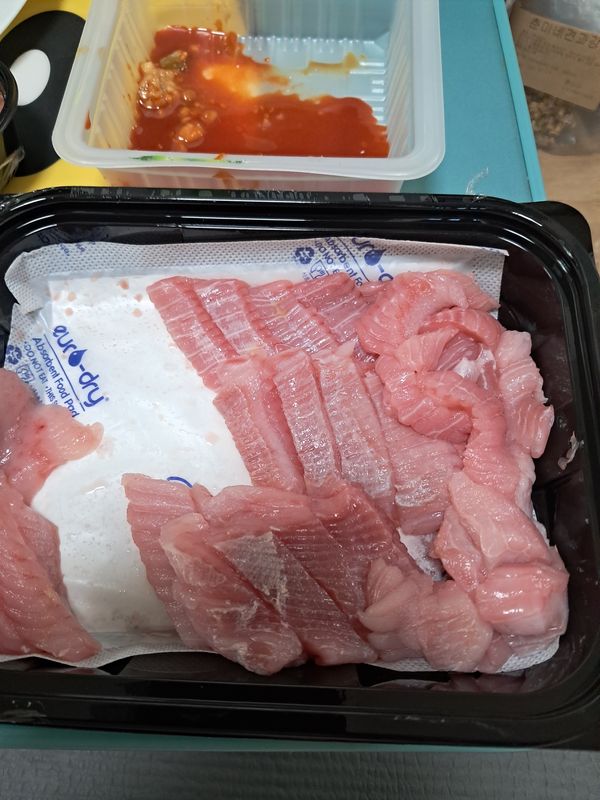찰기를 넘어 질겨요 분명 순수 생선살인데 이가 안들어가요 일일이 힘줄? 꼭 고기근막 같은 식감
