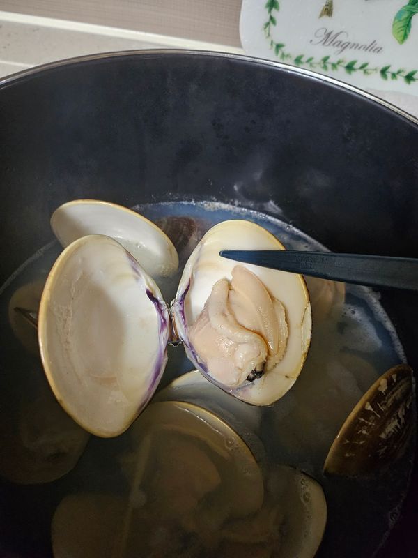 백합은 물을 끓이기 전부터 넣고 끓이셔야 입이 벌어집니다. 아주 간혹 입을 벌리지 않는 백합도 있지만 상한 것이 아니니 칼로 까시면 싱싱한 상태 그대로 만나보실 수 있습니다. 오래 끓이면 백합 살이 질겨질 수 있으니 약불로 가볍게 끓이는 것을 추천드립니다. 끓이면서 나오는 거품을 걷어내면 더욱 깔끔하고 맑은 국물을 낼 수 있습니다.