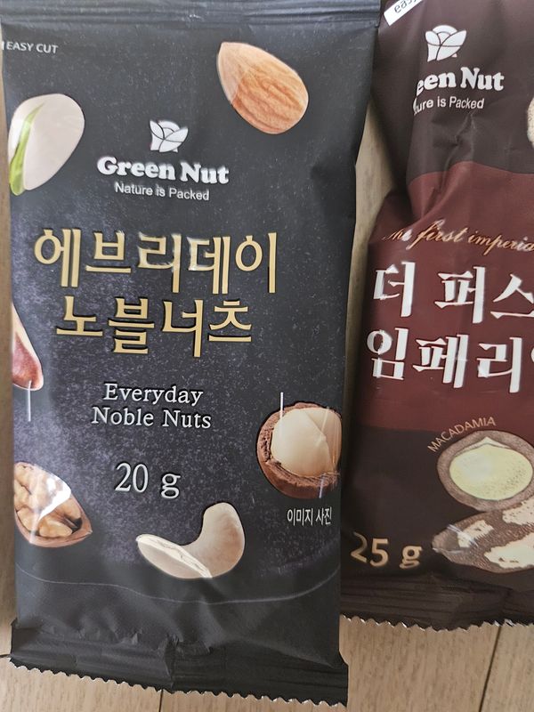 견과류 맛있게 잘 먹고 있습니다~낱개로 포장되어 있어 날마다 한개씩 챙겨 먹을 수 있어 좋아요~