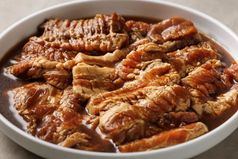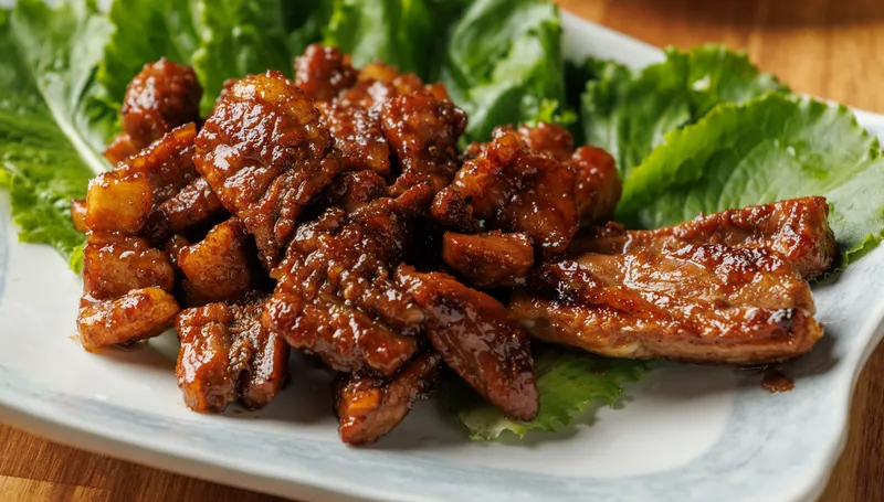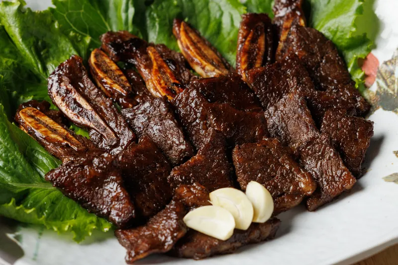 된장맛은 구수한 된장으로 연육하여 더욱 부드럽고, 고소한 맛이 일품입니다. 과일과 채소로 단맛을 내고 알싸한 마늘향이 은은히 올라오는 것이 특징입니다.