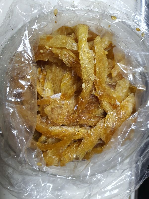 살짝 달콤 하긴 하지만 맛있어요. 처음 먹어본맛?! 약간은 낫설은 맛이긴 하지만 밥반찬 이나 술안주도 괜찬을것 같아요.