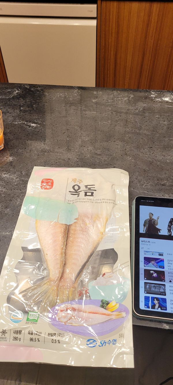옥돔이 특이래서 큰 줄 착각했네요 얼음이 다녹아서 약간 꾸리한 냄새에 좀 식상했어요~ 하지만 맛있게 잘먹었어요~