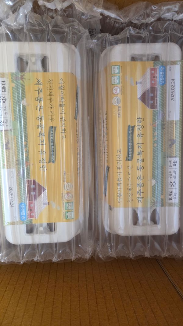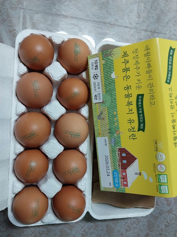 한개가 금이가서 왔다길래 그냥 먹으라고 했는데 바로 몇개 삶아먹었더니 노른자가 맛이 다르다고 고소하다하네요.