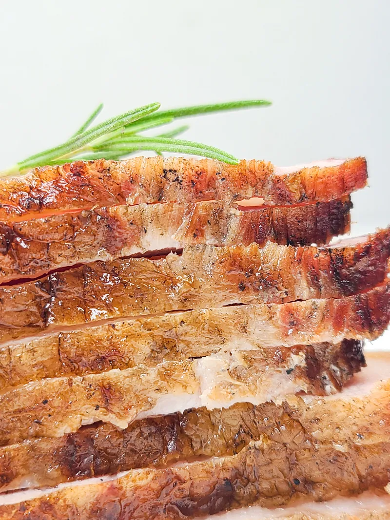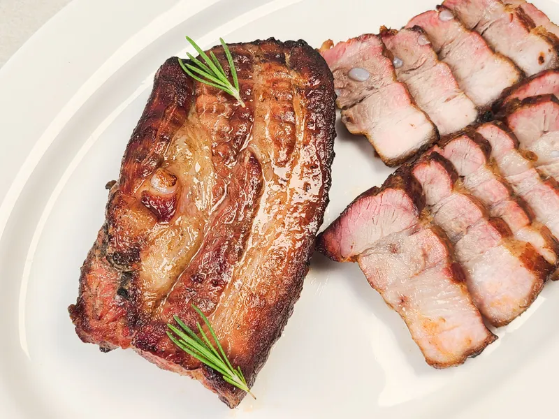 불향 가득 머금은 두툼한 삼겹살, 바비큐처럼 깊고 고소한 풍미가 살아있어요.