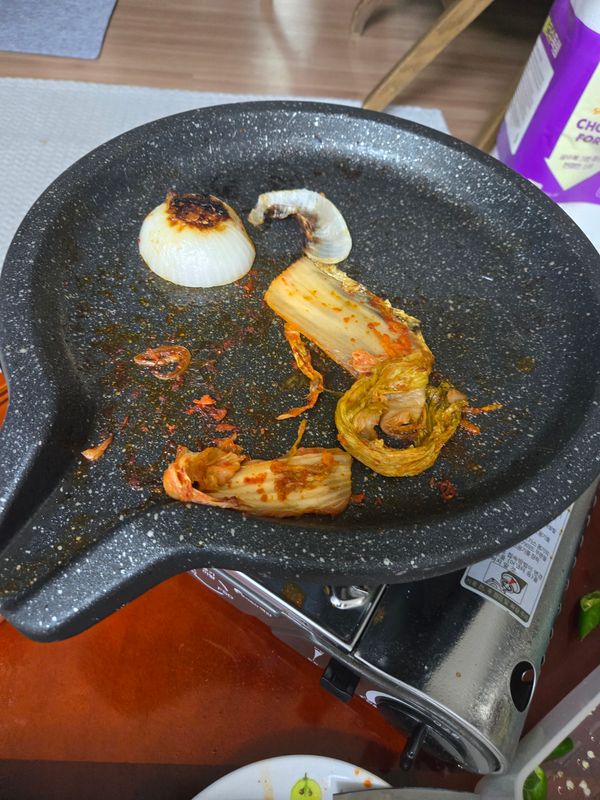 아파트에서 캠핑간 느낌의 불향과 고기맛으로 입과 코가 즐거운 시간이였어요 거실에서 전기 팬에 구워도 초벌로 인해 기름도 안튀고 고기 냄새도 거의 안나서 뒤처리도 간단했어요 다음에는 야외에서 꼭 도전 합니다