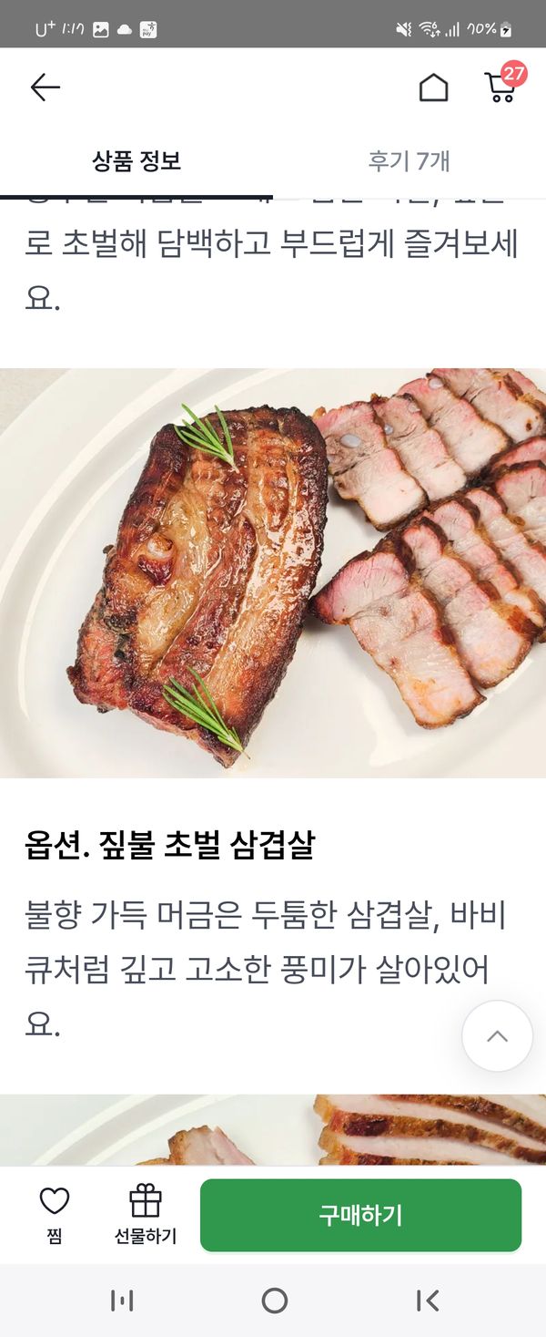 옵션: 짚불 초벌 삼겹살 1kg