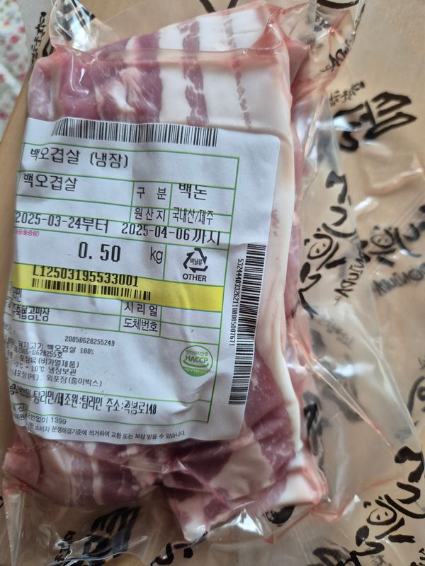 쫄깃한 제주 백돼지 오겹살 500g
