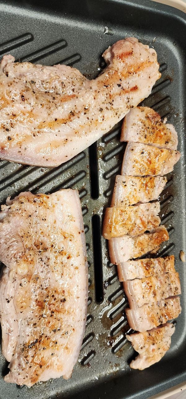고기 엄청 싱싱하고여 비계랑 살코기 비율도 너무 좋았어요 고기 구울때 오버쿡됐는데도 남편이 씹을수록 고소하다고 먹는 내내 칭찬했네요^^