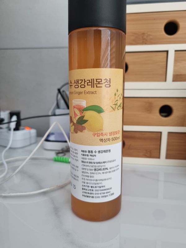 날씨가 추워져서 비상용으로 후기 보구 주문을 했는데 생각보다 맛 괜찮네요~^달콤 하면서도 아카시아 벌꿀 향이 나면서 목 안이 시원 하네요~^감기가 금방 나을거 같은 기분이요~^오자 마자 신랑 한잔 타 줬더니 약은 안먹을라더니 봉동 수 생강 레몬청은 맛나게 마시고는 꿀잠 자네요~^
