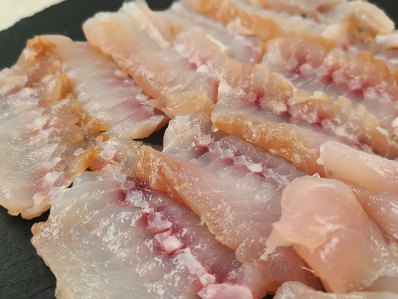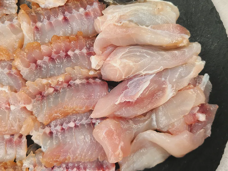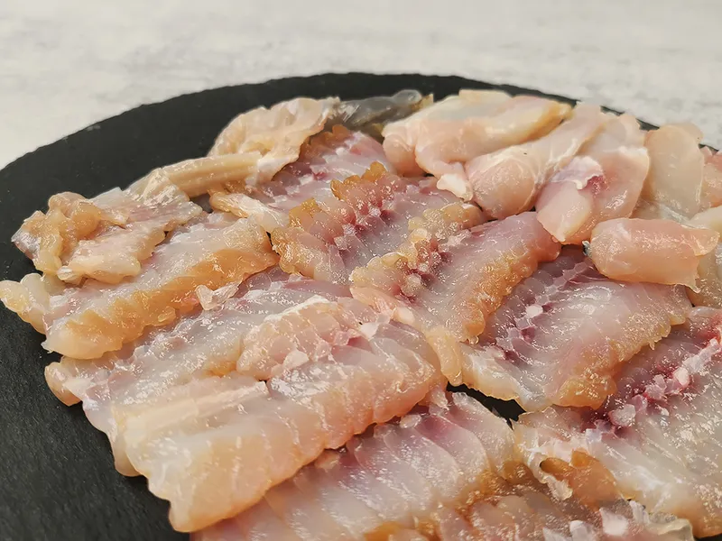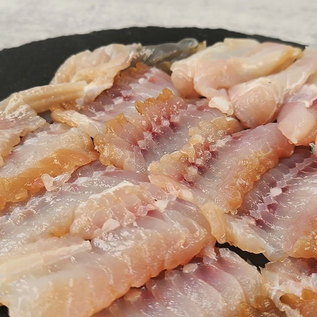 오독오독 식감 좋은 국내산 홍어입니다. 국내산 홍어로 돌기가 거의 없이 부드러운 식감을 자랑하죠.