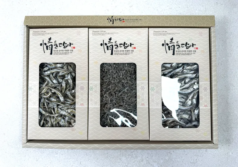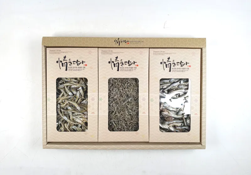 남해안에서 어획한 자연산 멸치는 짜지 않으면서도 비린맛이 적어요. 멸치 특유의 구수하고 은은한 단맛이 살아있어서 밥반찬으로도, 국물 내기에도 좋답니다. 3가지 종류를 한 세트로 구성해 다양한 맛을 경험할 수 있어요.