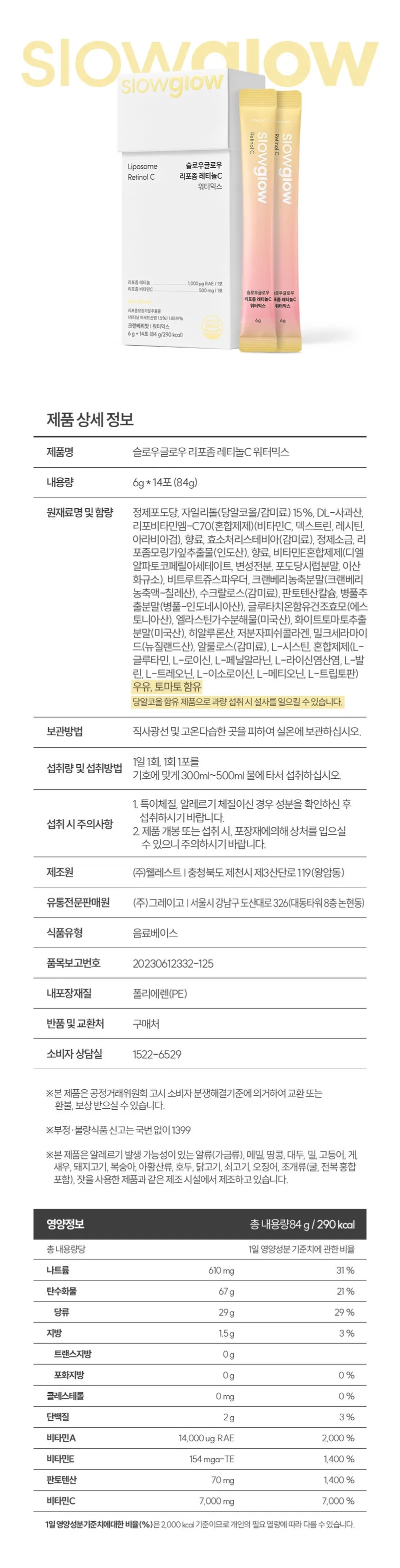 하루 한 포로 간편하게 섭취하는 레티놀C 워터믹스 1박스 84g(14포)