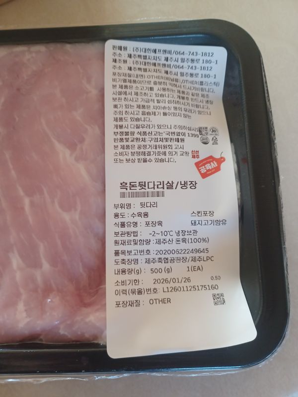 포장상태 아주좋아요 장민호님에 제주 흑돼지 뒷다리살 양도많고 가격도 맘에쏘옥듭니다 구매성공입니다 재구매의사있음 배송 은 좀 걸렸어요