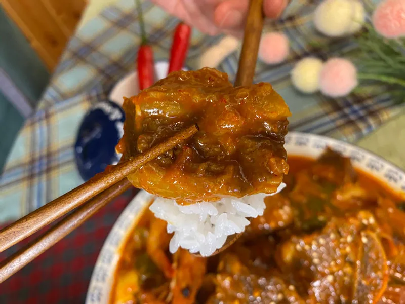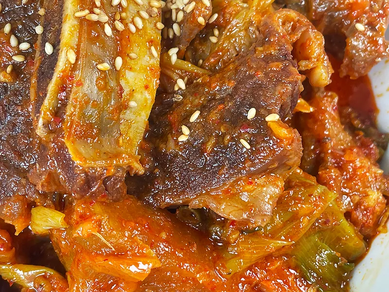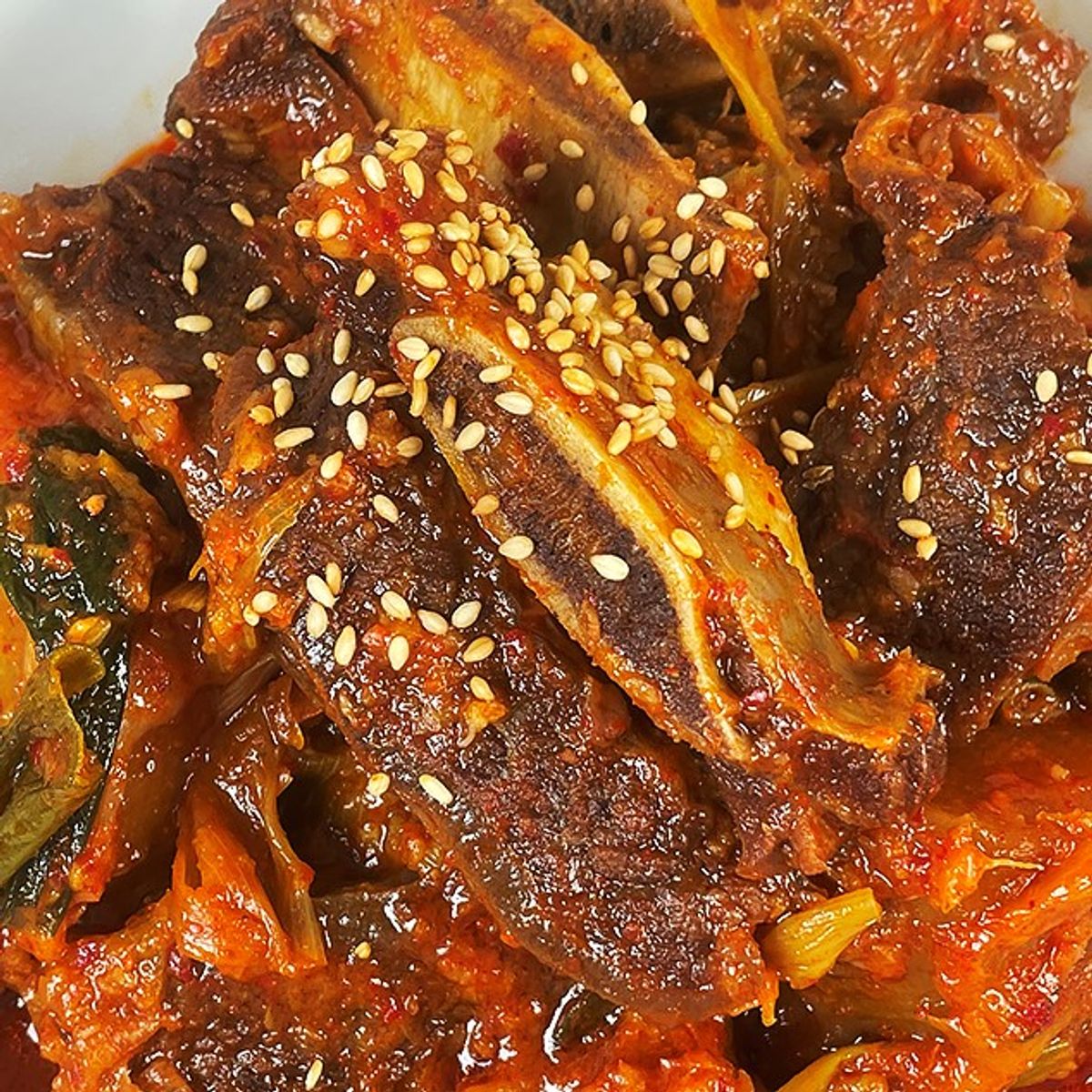 매콤한 특제 소스와 부드러우면서 쫄깃한 소갈비가 만났습니다. 밥에 국물을 슥슥 비벼 드시면 최고의 밥도둑입니다.