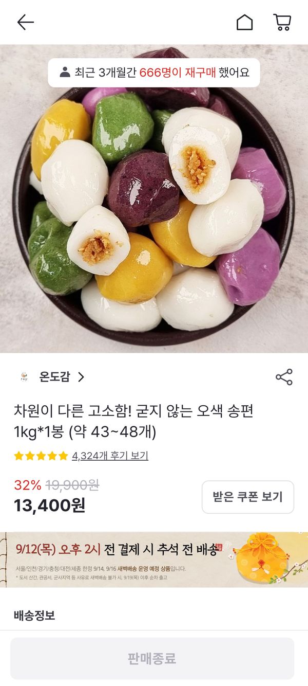 옵션: 오색 송편+모시 송편 1kg*각 1팩