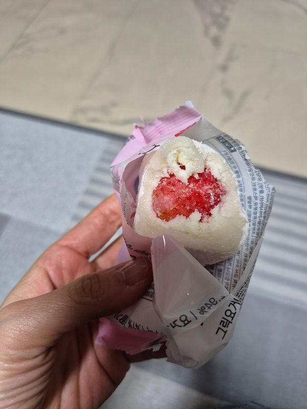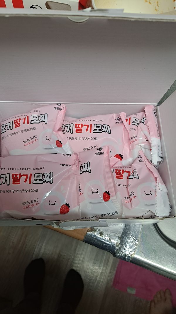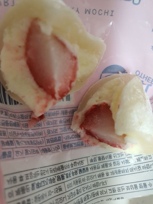 딸기 모찌 맛있네요 떡은 쫀득쫀득하고 안에 딸기는 달콤하니 딸기향이 좋아요.세식구 하나씩 아껴 먹으려고 세개는 냉동실에 먹고 재구매 하겠습니다