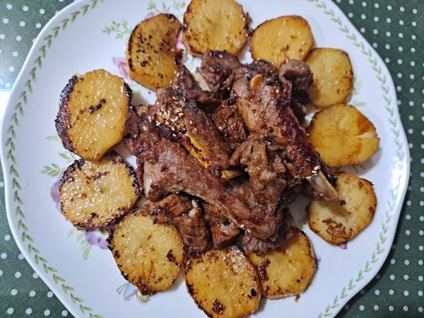 5. 접시에 먹기 좋은 크기로 자른 갈비를 옮겨주면 끝입니다!
