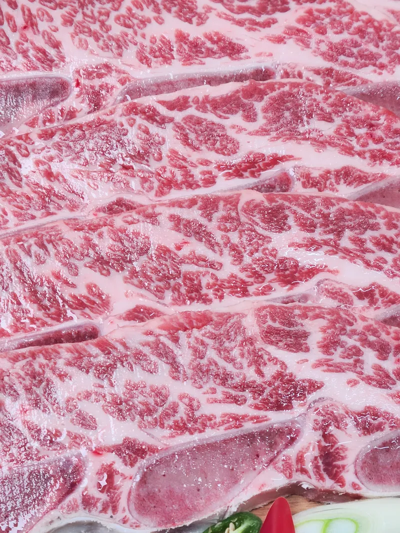뼈 밑에 있는 막을 꼼꼼하고 깔끔하게 제거해 뼈와 살이 잘 분리돼요. 양념이나 연육 과정 없이 그대로 구워 먹어도 뛰어난 풍미를 즐길 수 있습니다. 가장 우수한 마블링을 지닌 고기로 입안에서 녹아내려요.