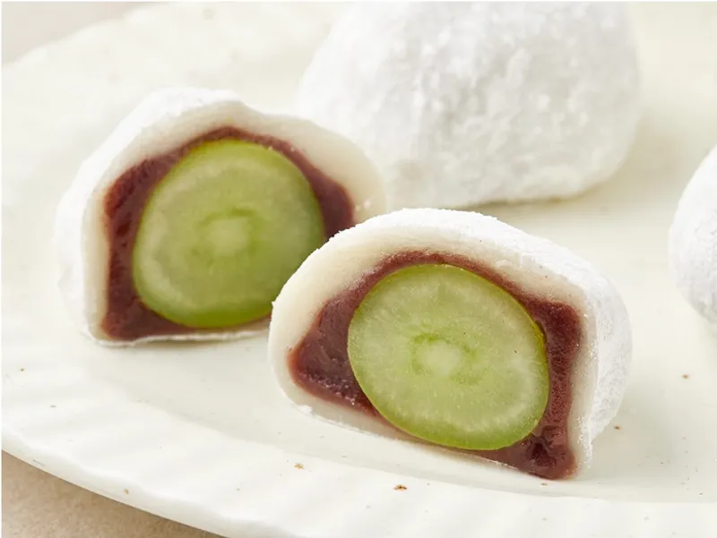 쫀득한 찹쌀피 안에 달콤한 앙금과 청포도의 산미가 조화됩니다. 냉동 상태에서도 해동 후 부드럽게 즐길 수 있도록 배합했습니다.