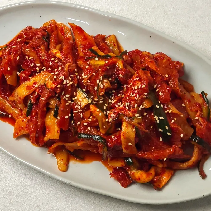 정성스럽게 조합된 양념장은 가오리 본연의 맛을 한층 높여줍니다. 새콤달콤한 양념이 생선의 바다 냄새를 중화시키고 깊은 풍미를 더해줍니다. 밥과 곁들이면 그 맛이 더욱 풍성해지는 매력적인 반찬입니다.